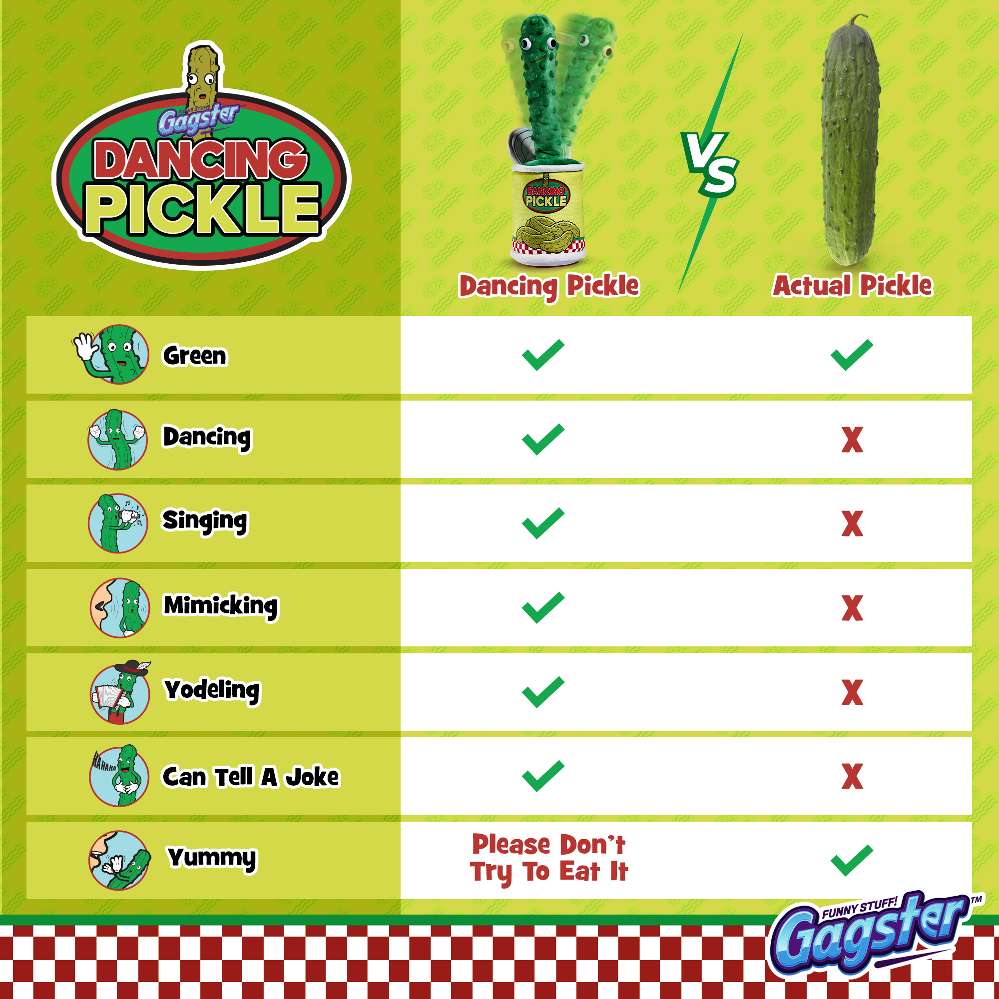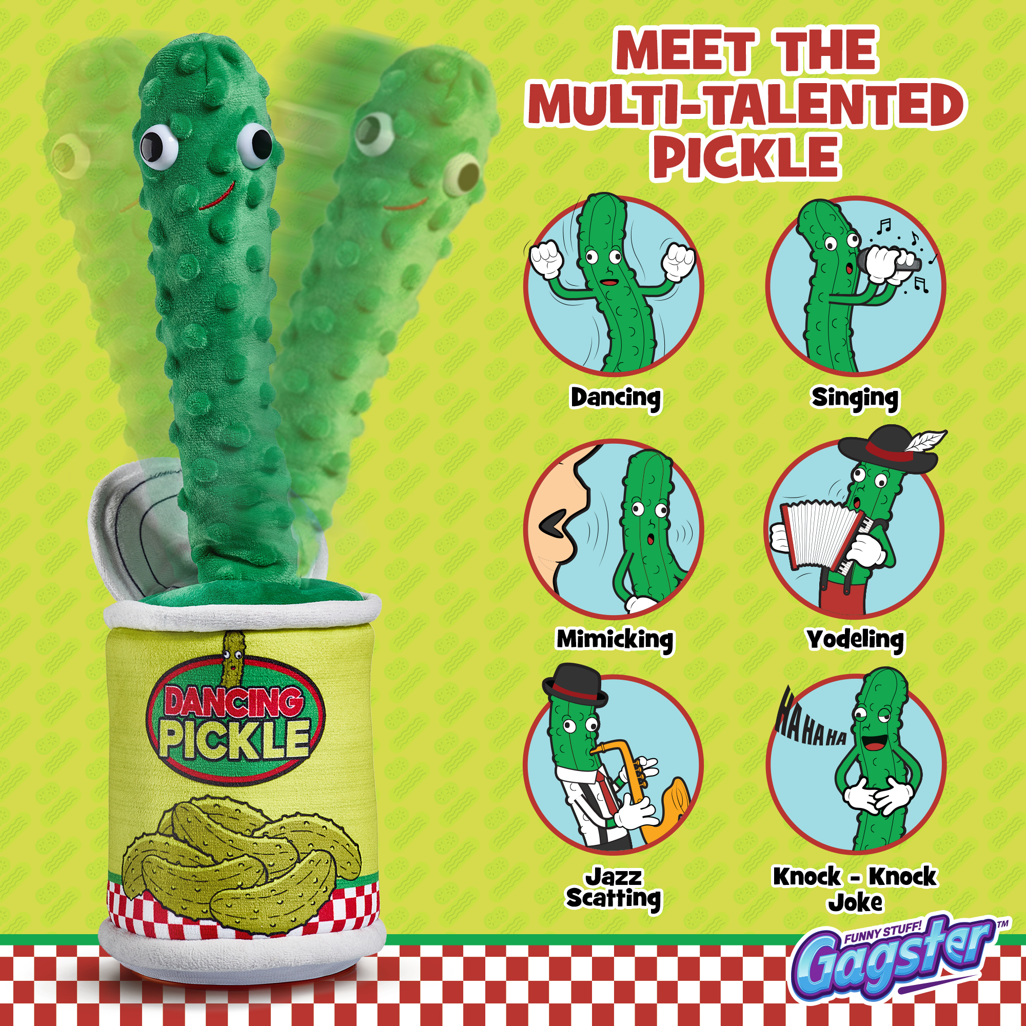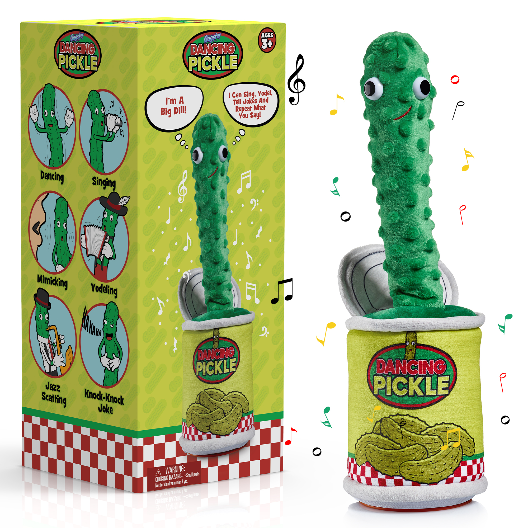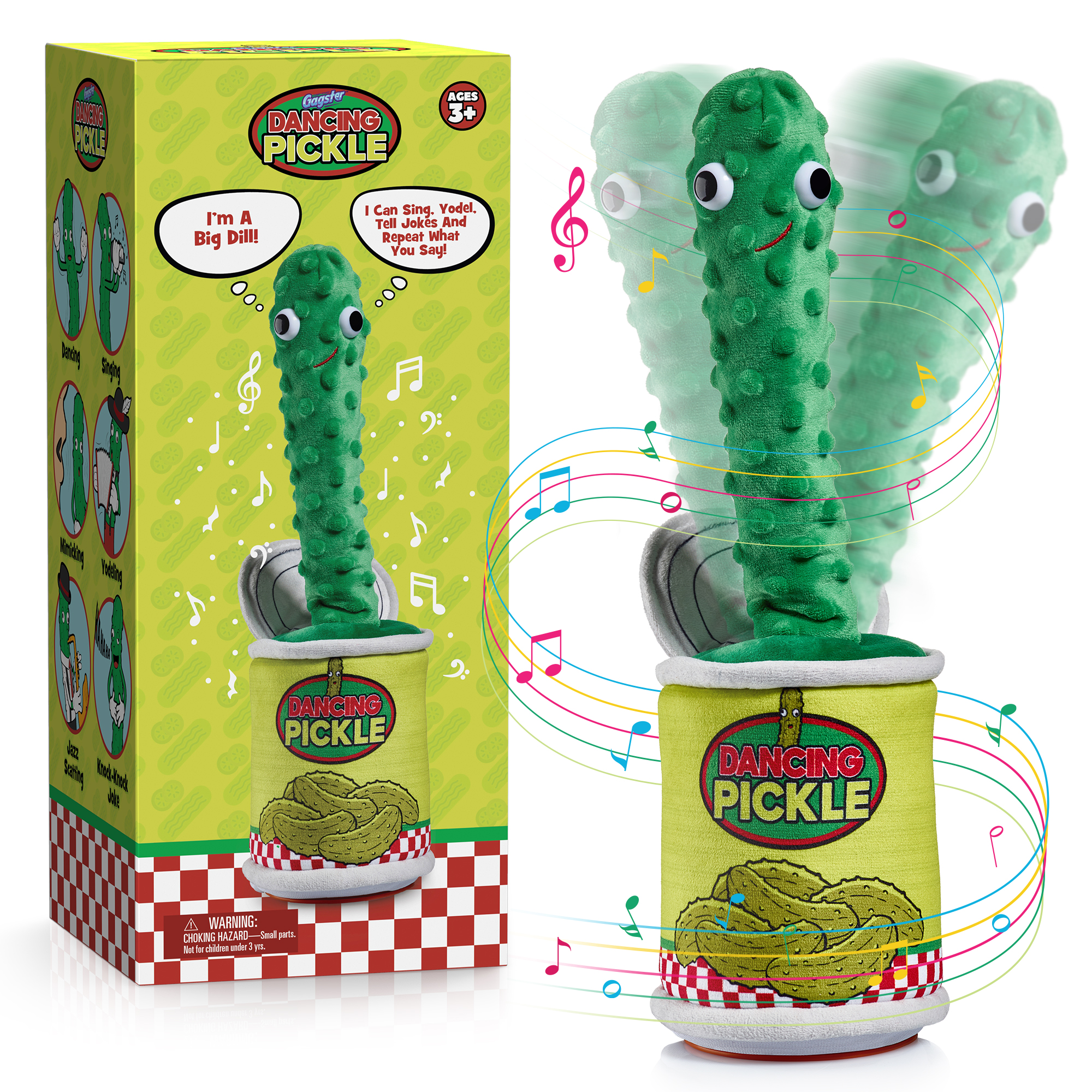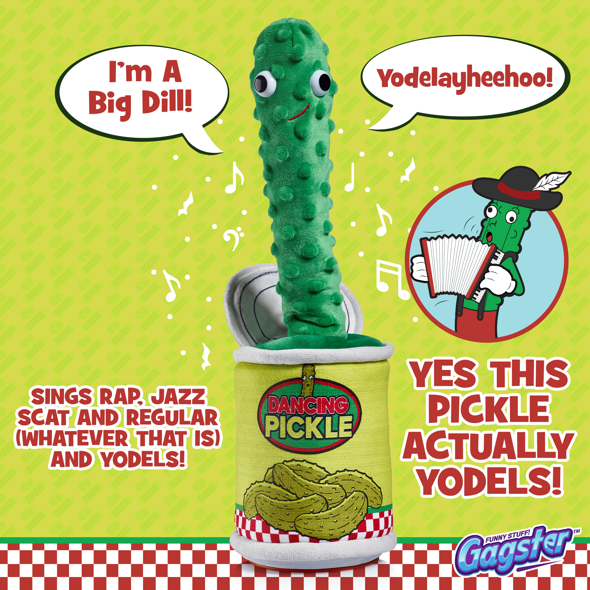 - A Super Cute, Funny Yodel Toy to Make You LOL – This freestanding, plush, funny, dancing, wiggling, joke telling, singing, yodeling pickle in a jar is the newest thing after the dancing cactus.
