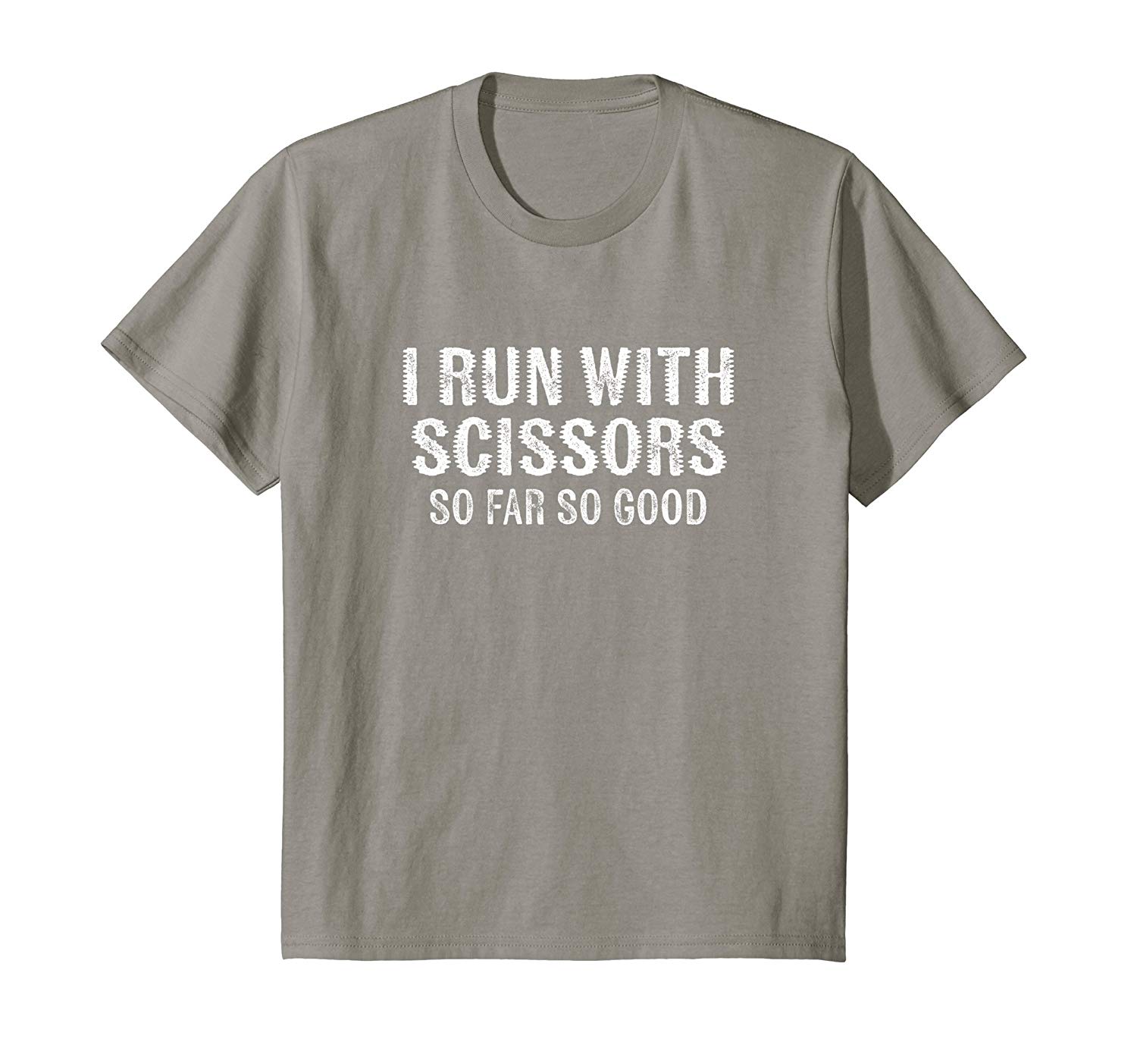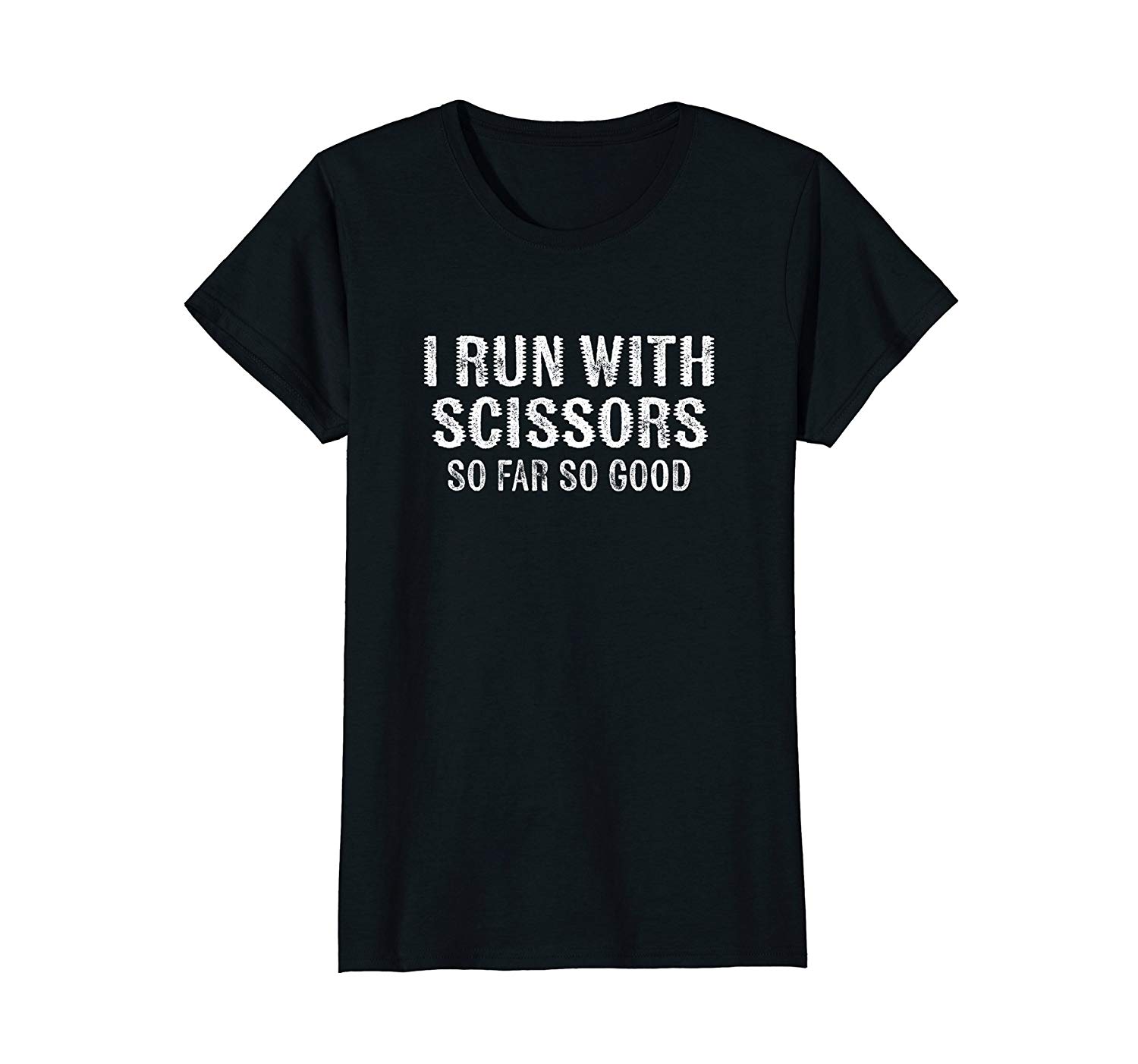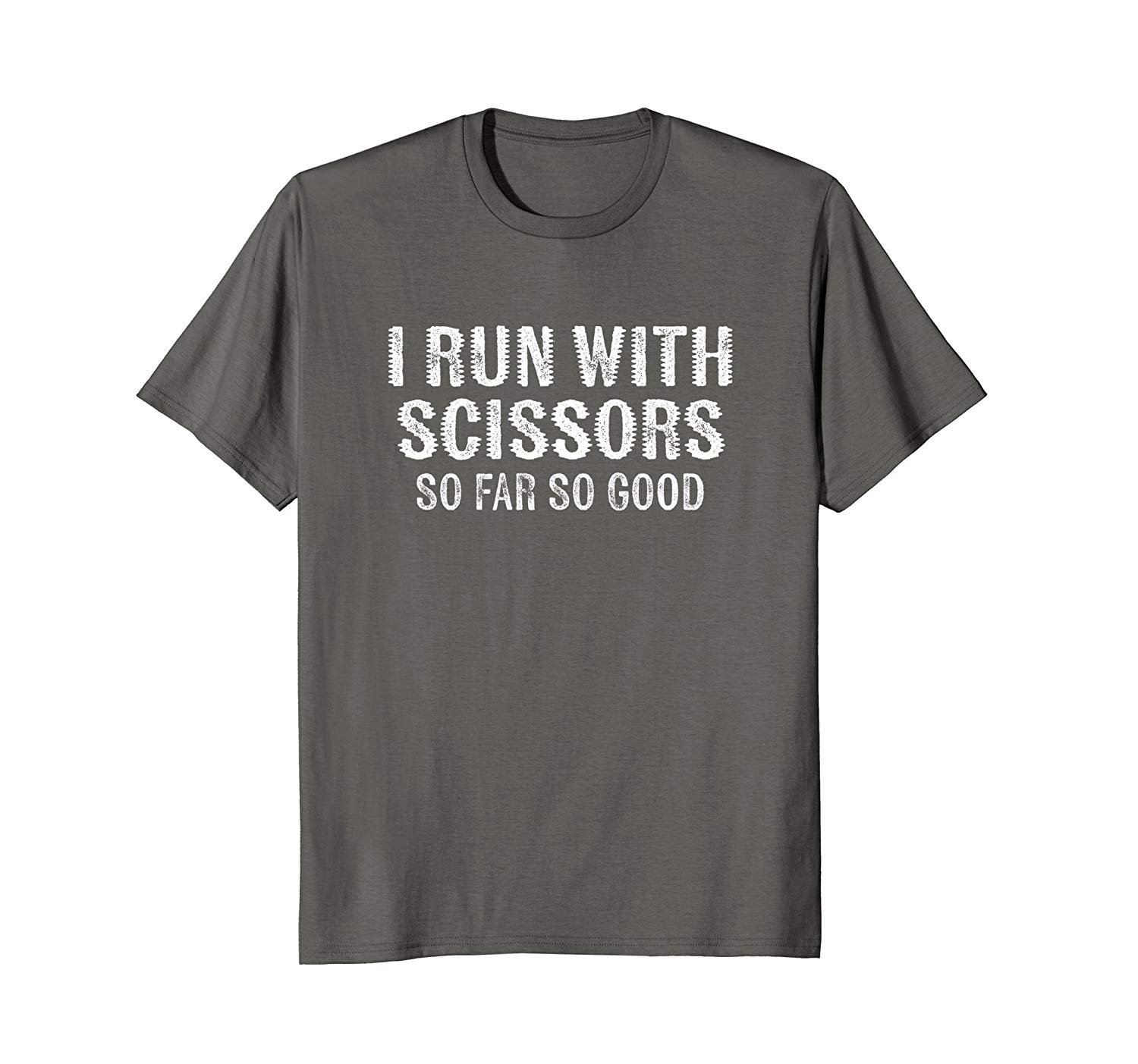 I Run With Scissors So Far So Good Funny Humor T-Shirt: Like to live dangerously? The running with scissors tee is hilarious – but do not try this at home! This shirt is available in men’s, women’s and youth sizes for your choice and comfort. Great gift tshirt for extreme sports dudes, self humor fans, funny shirts fans, mom, dad, brother, sister, friends, a birthday, Christmas, graduation and any other gift giving occasion.