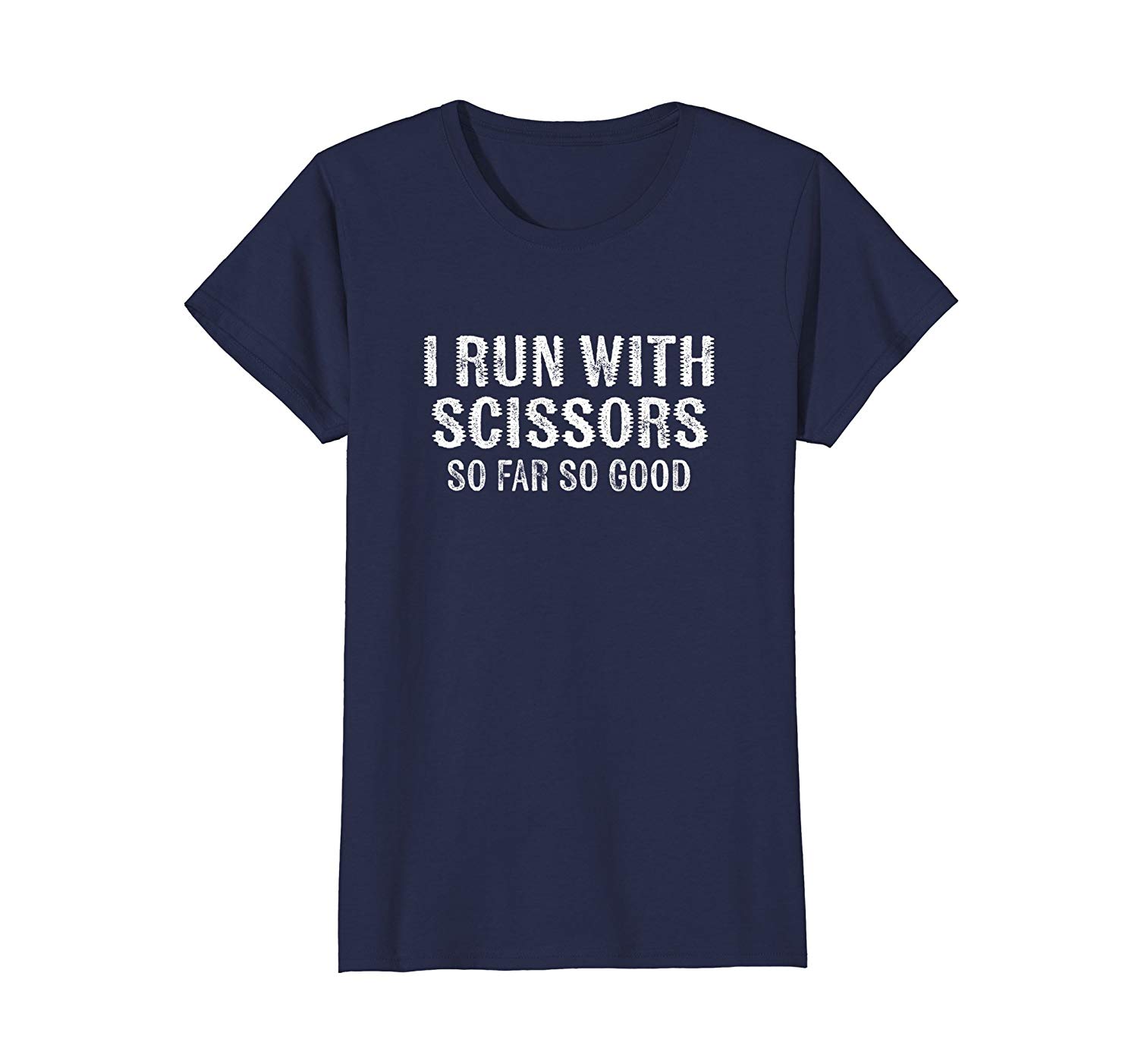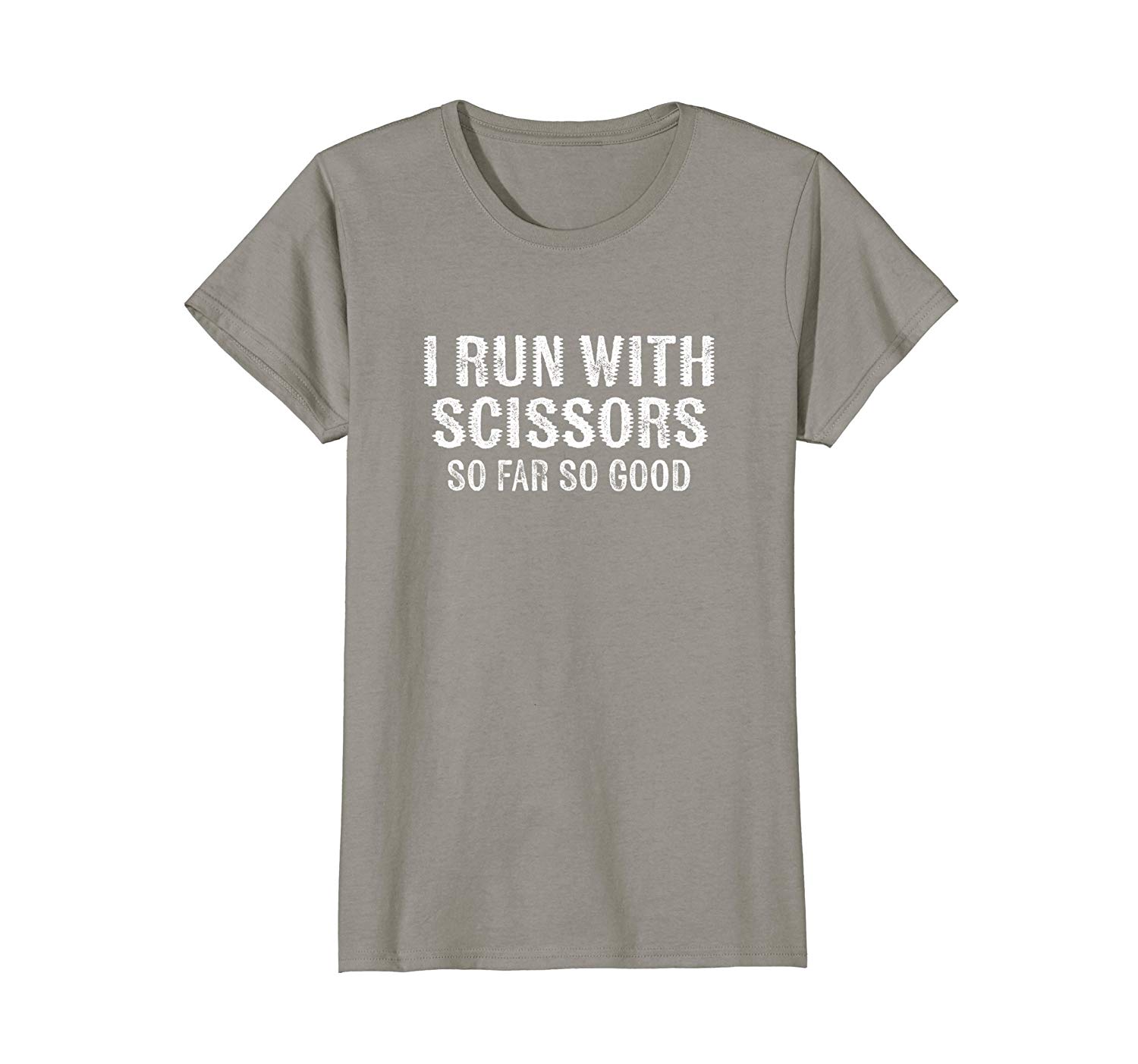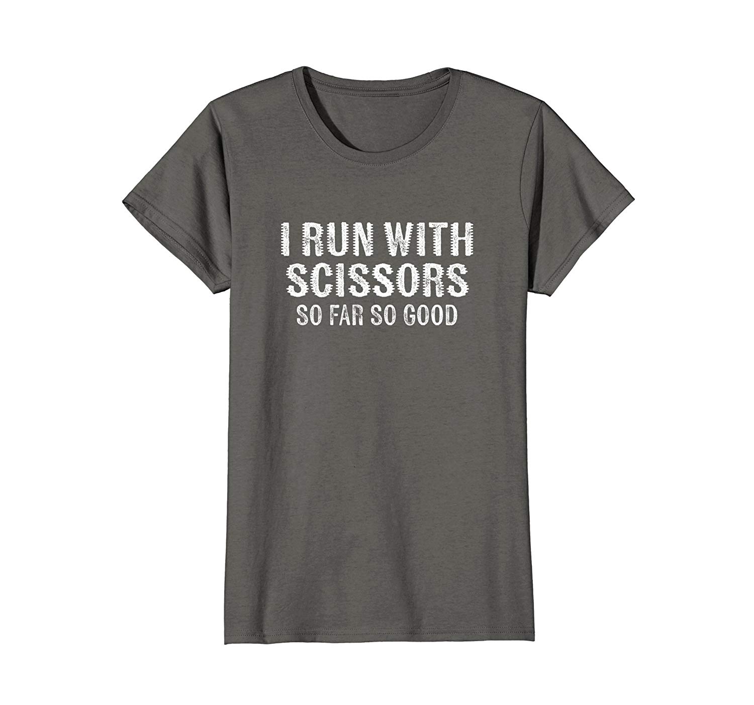 I Run With Scissors So Far So Good Funny Humor T-Shirt: Like to live dangerously? The running with scissors tee is hilarious – but do not try this at home! This shirt is available in men’s, women’s and youth sizes for your choice and comfort. Great gift tshirt for extreme sports dudes, self humor fans, funny shirts fans, mom, dad, brother, sister, friends, a birthday, Christmas, graduation and any other gift giving occasion.