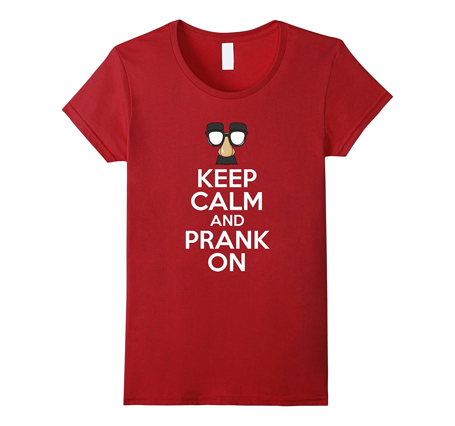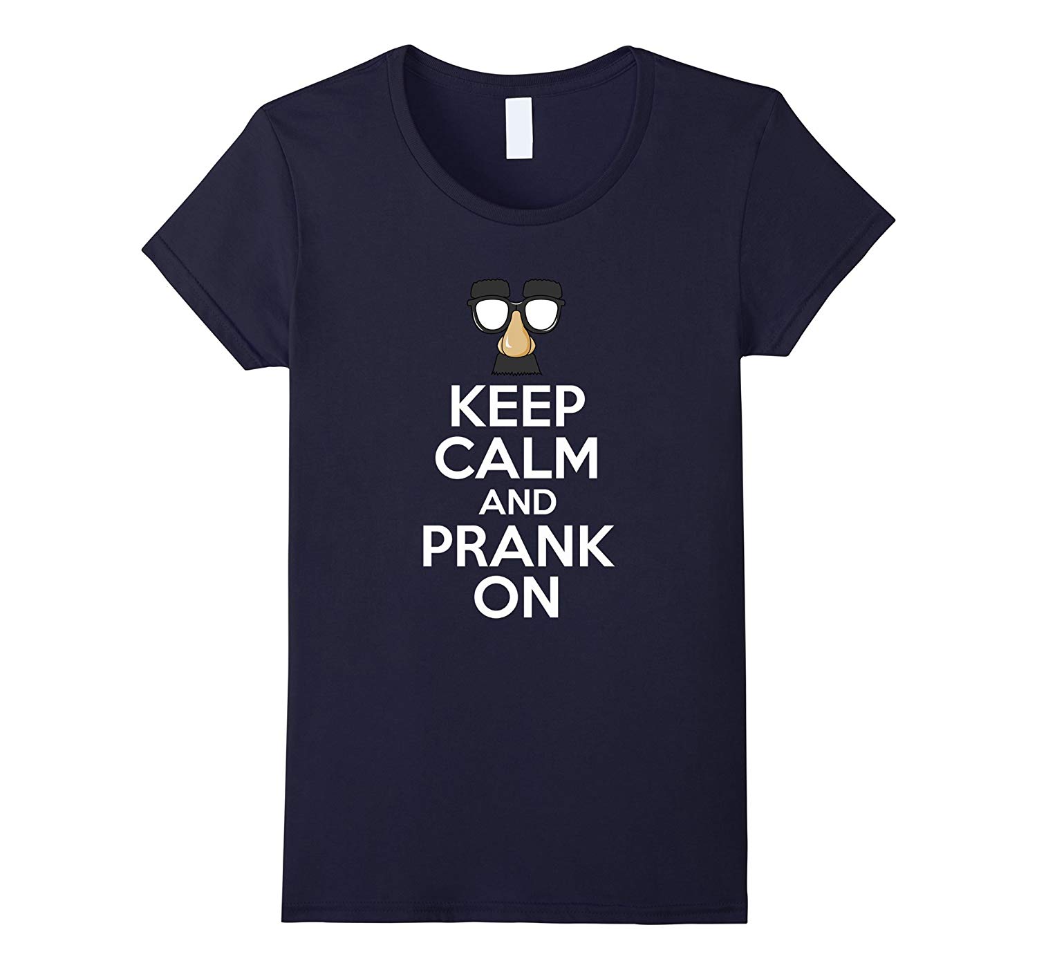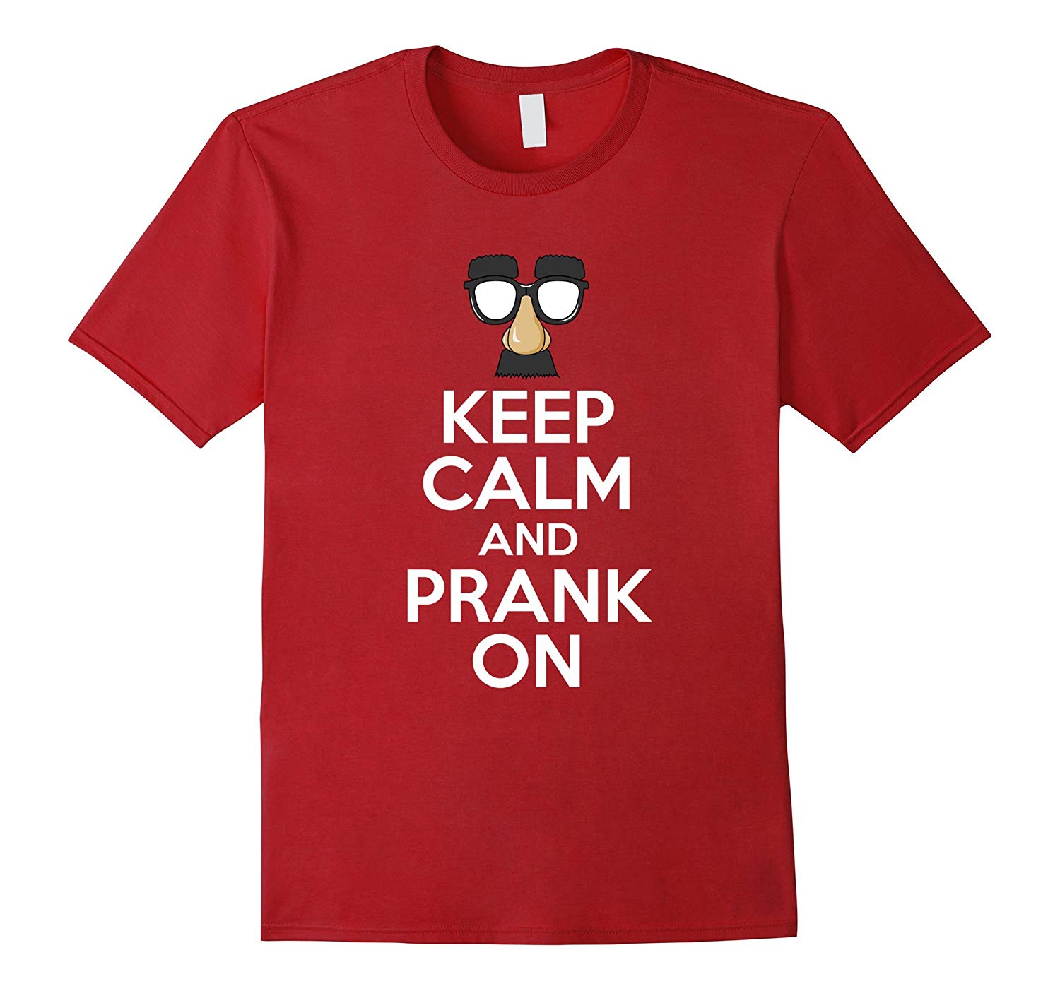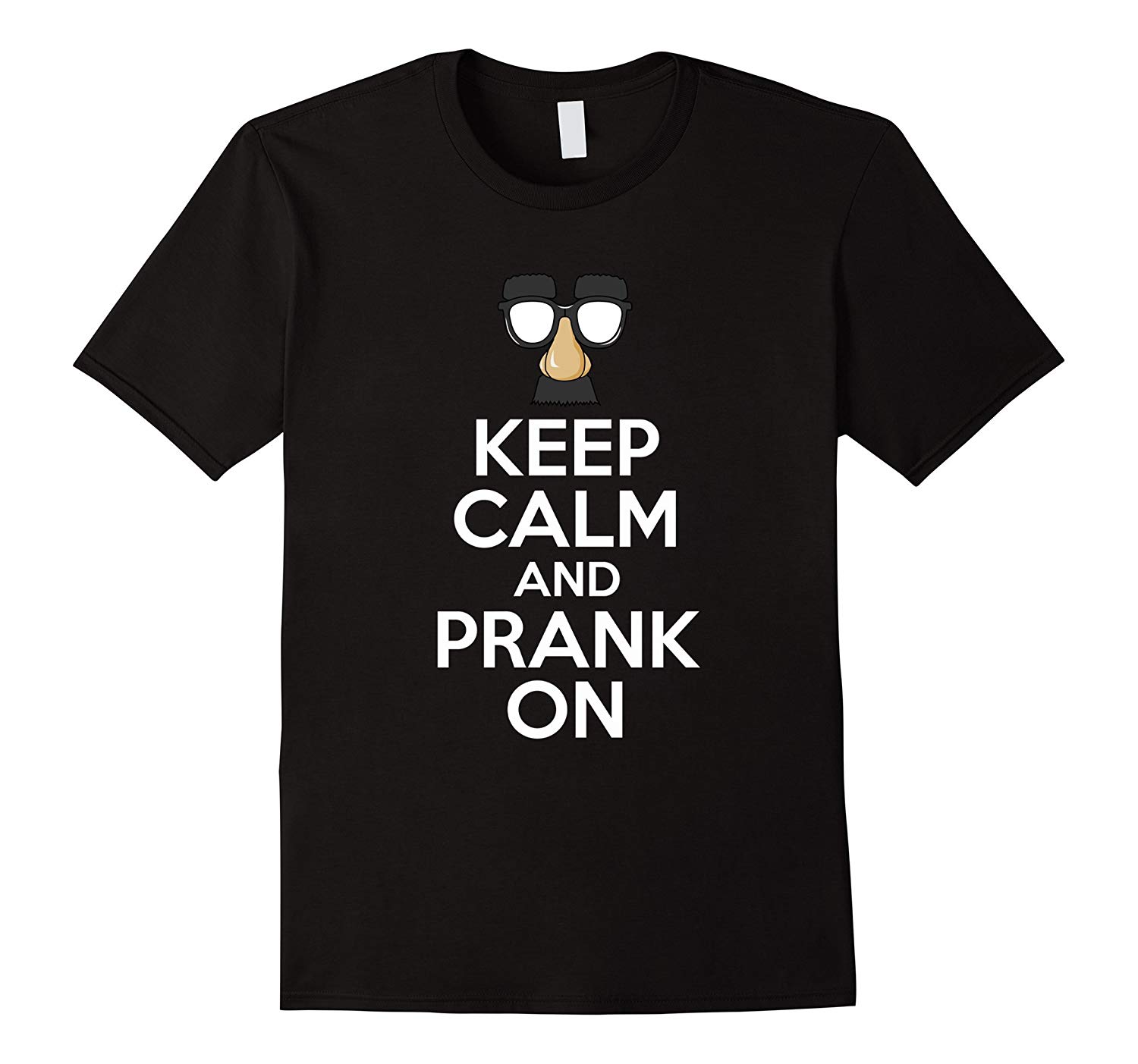 - Keep Calm And Prank On T-Shirt – Funny April Fools Day Fake Nose,Glasses And Mustache Gag Joke Tee