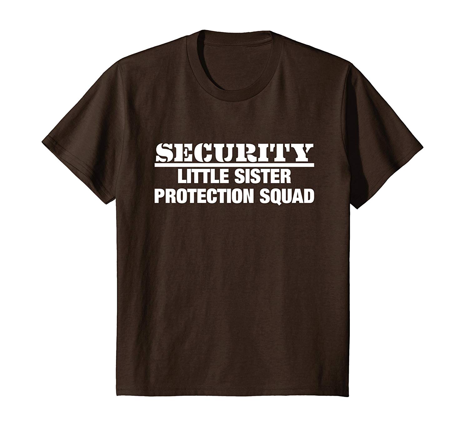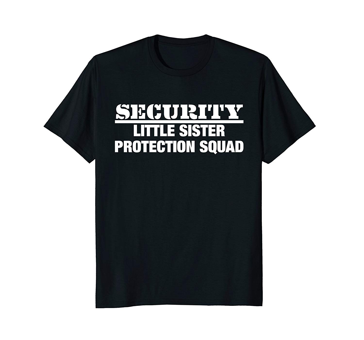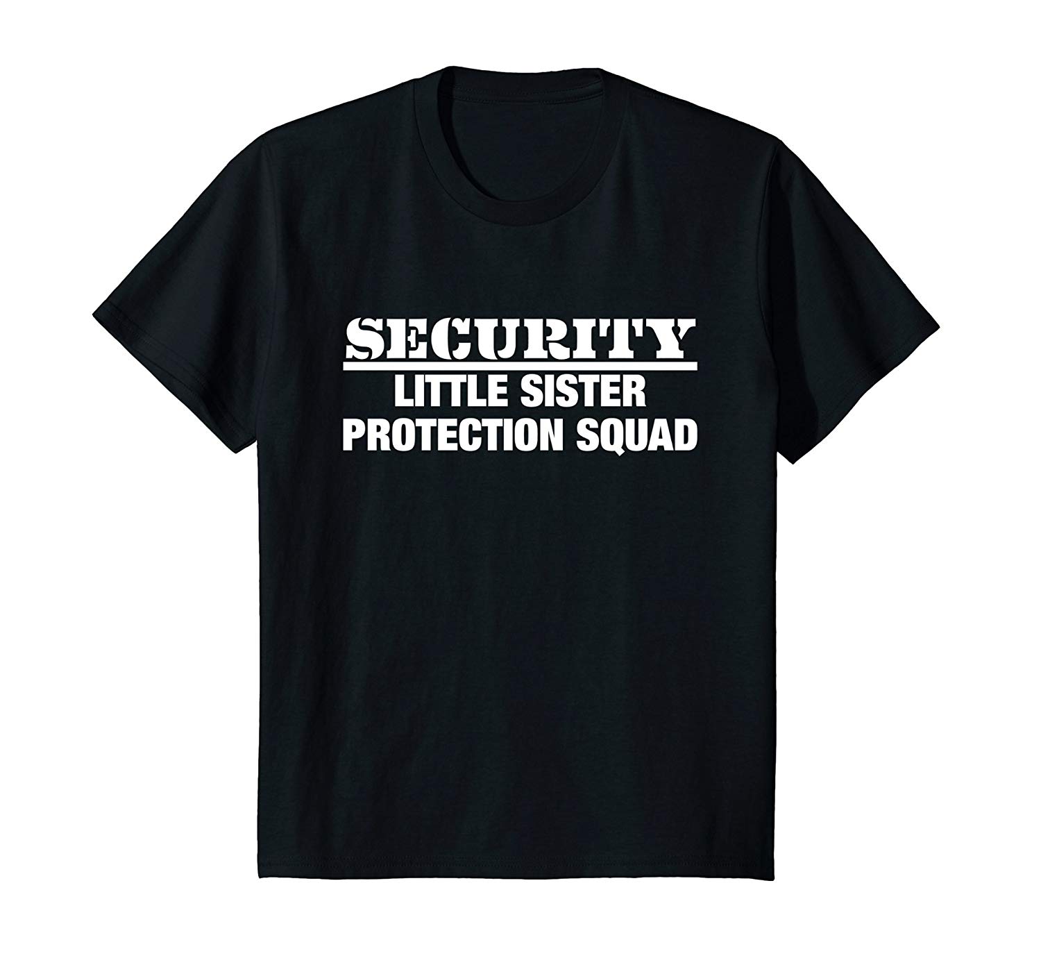 Security Little Sister Protection Squad T-Shirt – Funny Big Bro Tee: Hi big bro, this design is for you. This will send the message for anyone even thinking of messing with your sister. The “Security – Little Sister Protection Squad” T-Shirt is both funny and scary 🙂 The perfect design for the over protective big brother, funny family joke gift tshirt for tough big brothers, scary big bros, siblings who love their little sister, boys, Christmas and birthdays.