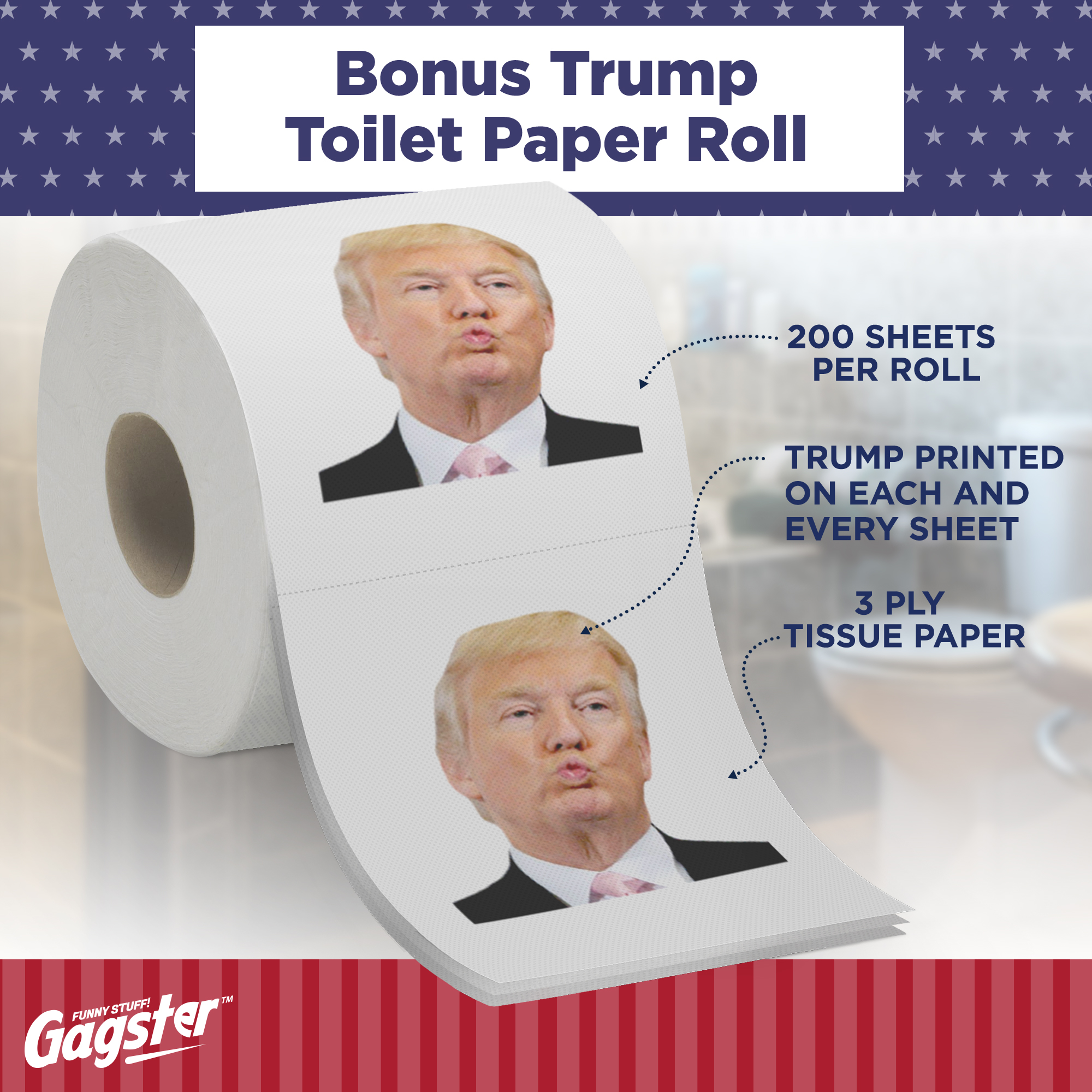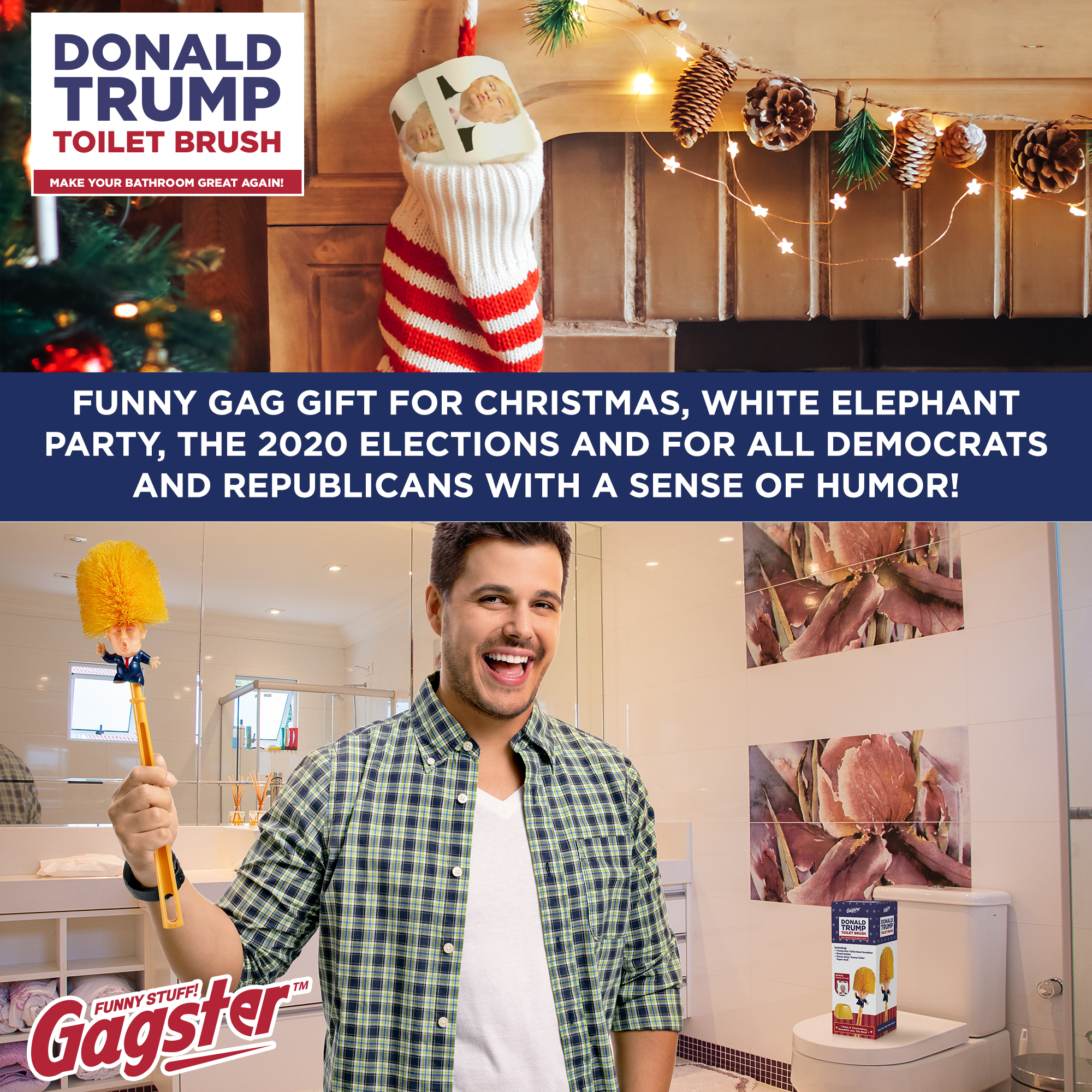 - 🚽 ULTIMATE GAG GIFT FOR LIBERALS & CONSERVATIVES – Trying to think of a funny, unique gift for friends, family, coworkers, or a white elephant party? Love him or hate him; this Trump bathroom brush and funny toilet paper are sure to be a hit.
